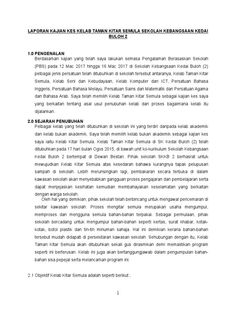 Contoh Laporan Kajian Kajian Kes Kokurikulum Dan Persatuan Ipg 2020