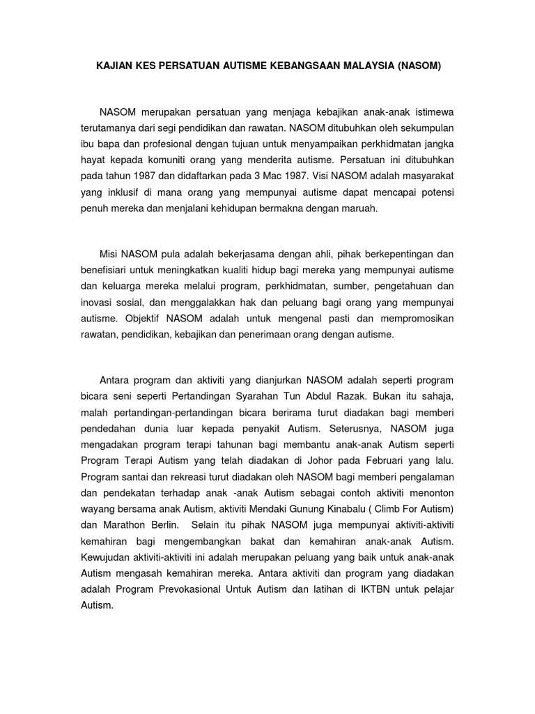 Laporan Kajian Kes Persatuan Autisme Pdf